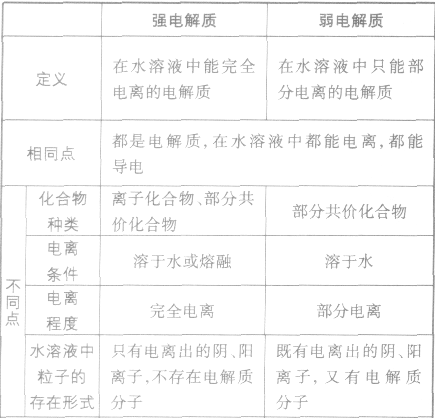 ”表示。 強電解質(zhì)和弱電解質(zhì)的比較: