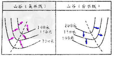 A、由山谷的分布,判斷河流的位置及流向。