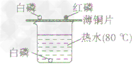 分別將一小塊白磷和一小塊紅磷放在薄銅片上,另取一小塊白磷放入熱水中,如下圖:![]() | ①薄銅片上:白磷燃燒,產(chǎn)生大量白煙,紅磷沒有變化 ②熱水中,白磷沒有燃燒 | ①白磷、紅磷都是可燃物.薄銅片上的白磷與O2接觸,同時溫度達到白磷的著火點,故白磷能夠燃燒 ②薄銅片上的紅磷與O2 接觸,但溫度沒有達到其著火點,熱水中的白磷溫度達到了其著火點.但沒有與O2接觸,所以紅磷和水中的白磷都不能燃燒 |
