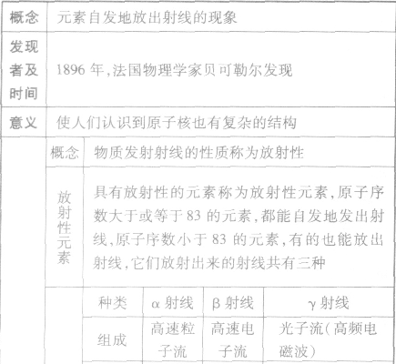 | 備注 | ①因?yàn)楹俗娱g存在非常強(qiáng)的核力,所以原子核內(nèi)蘊(yùn)藏著巨大的能量 |