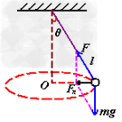 只受兩個力:豎直向下的重力 mg 和沿擺線方向的拉力 F 。兩個力的合力,就是擺球作圓周運動的向心力 F n