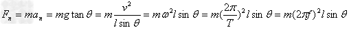 為擺球的軌道平面到懸點的距離,即圓錐擺的高度。由這些公式可知,高度相同的圓錐擺,即等高圓錐擺的T、f和ω相等,與m、l和θ無關(guān)。