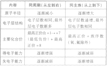 元素周期表中主族元素性質(zhì)遞變規(guī)律: