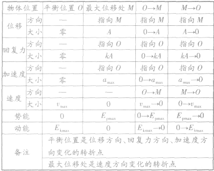 ③某段時間內(nèi)位移、回復力、加速度、速度、動能、勢能的變化情況