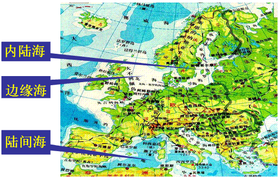 內(nèi)海:或稱地中海,如地中海、紅海、黑海、波羅的海、渤海等。