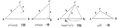 (一)若A為鈍角或直角,當(dāng)b≥a時(shí),則無解;當(dāng)a≥b時(shí),有只有一個(gè)解;