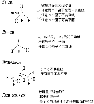 有機(jī)物分子的空間構(gòu)型: