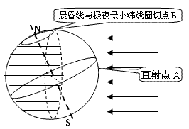 晨昏線與哪個緯線圈相切,該緯線圈與極點之間的緯度范圍內(nèi)就會出現(xiàn)極晝或極夜現(xiàn)象,南、北半球的極晝、極夜現(xiàn)象正好相反。