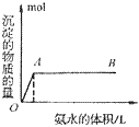 B. 向氨水中滴加鋁鹽溶液時,開始時氨水過量,如圖所示