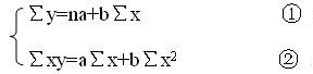 好了,現在我們得到了第一個算式“∑y=na+b∑x”,這就是公式中的①式。