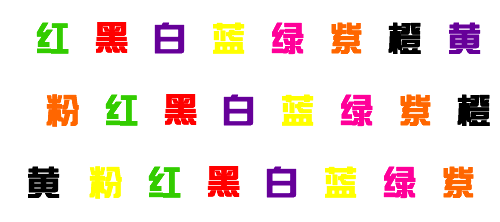 玩法一:只要看著下面的圖,無(wú)論什么顏色的字,讀出漢字的讀音就可以了,要求快速地讀,不要停頓不要想。